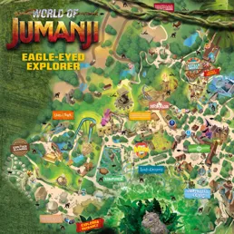 Explore the park with your eyes and count how many snakes, mandrills, and ostriches you spot.