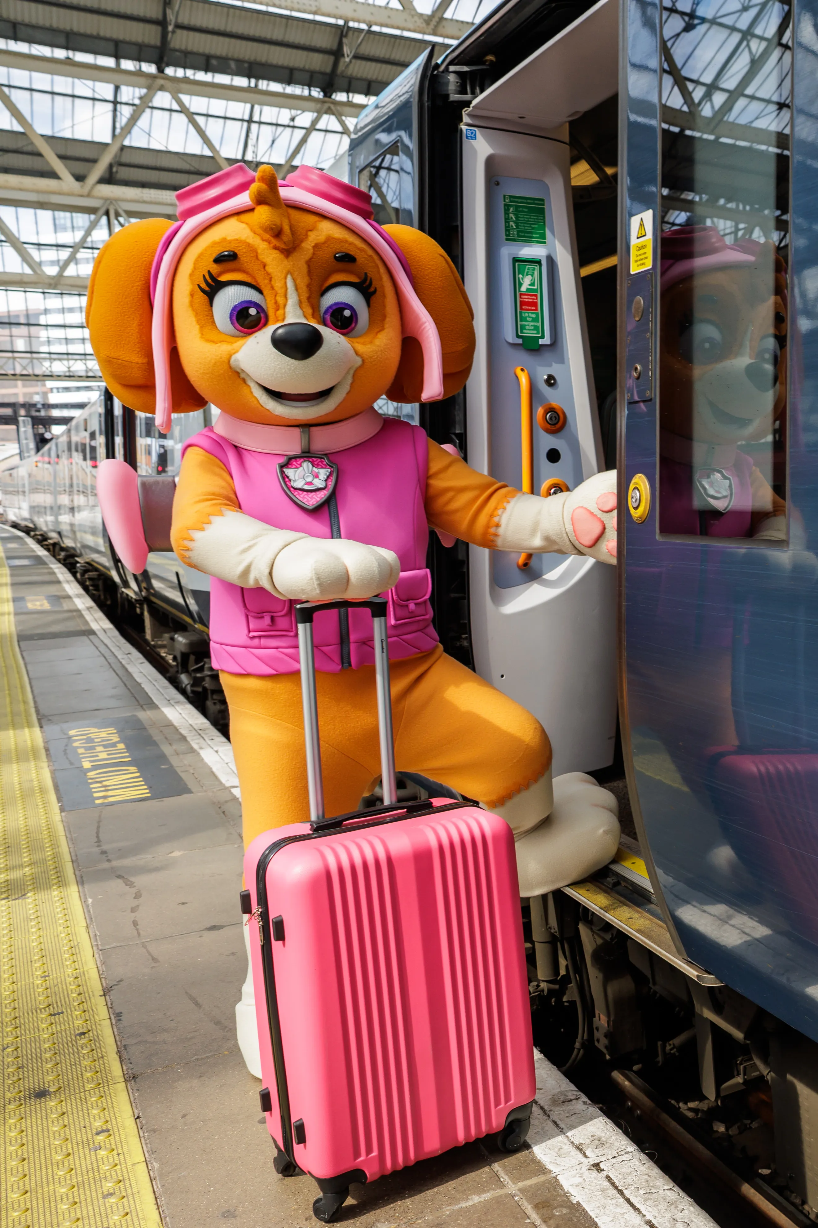 3 July 2025 | London, UK: Commuters at London Waterloo station couldn’t believe their eyes this week as a very special pup appeared, ready for an adventure. PAW Patrol’s Skye was spotted on Platform 4, bags in paw. The famous pup – from the hit series produced by Spin Master Entertainment and airing on Nickelodeon – posed for photos, before boarding her South Western Railway train to Chessington World of Adventures to oversee an exciting new development at the theme park.