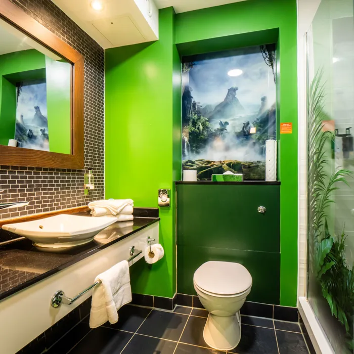 Immerse yourself in the spellbinding world of The Witch, Dog, Bird and Frog with this fully themed room.